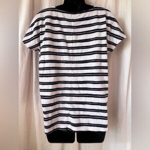 Lands End Women's Sz S Striped Crew Neck Short Sleeve Ribbed Blouse Blk/Wht