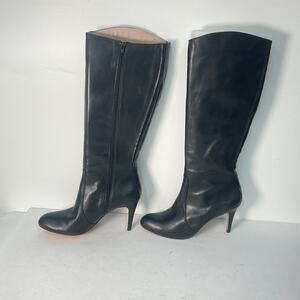 Lands' End Women's Tall Heeled Black Leather Riding Boots, Size 10B - Pre-Owned