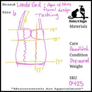 Lands' End Womens Tankini Top Aqua Mint Green With Navy Blue Floral Slimming Ruching Size 6