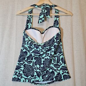 Lands' End Women’s Tankini Top Aqua Mint Green With Navy Blue Floral Slimming 6