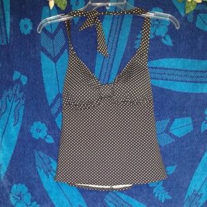Black and White polkadot Halter Top Padded bra Size 6 EUC Lowest part of v neck to bottom is 12"