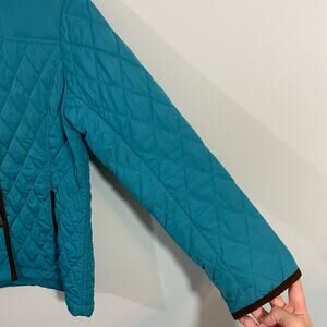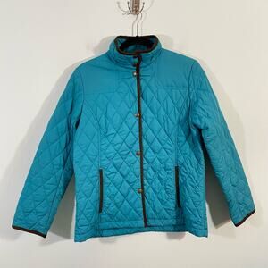 Lands' End Women's Teal Blue Brown Trim Quilted Snap Button Up Jacket