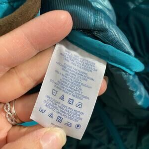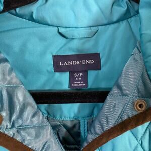 Lands' End Women's Teal Blue Brown Trim Quilted Snap Button Up Jacket Size S