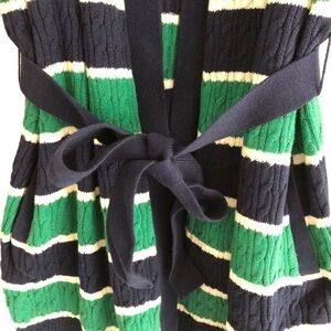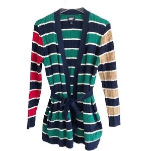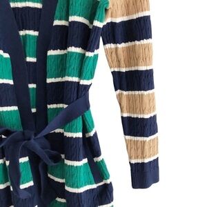 Lands’ End Womens Tie Front Cardigan Cable Knit Striped Size Small 6-8