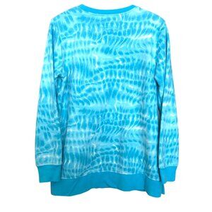 Lands End Womens Tie-Dye Blue Sweatshirt M/P 10-12 Cotton Blend Crewneck Long Sl