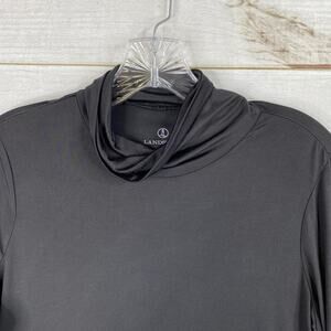 Lands End Womens Top M 10-12 Black Turtleneck Lightweight Slinky Knit Stretch