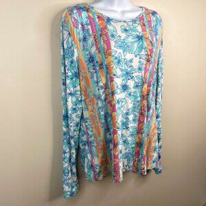Lands End Womens Tropical Floral UPF Rash Guard Top Medium Swim Long Sleeve