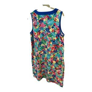 Lands’ End Women’s V-Neck Blue Multi Floral Cotton Dress w/ Pockets Size Medium