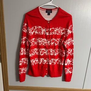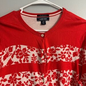 Lands’ End Women’s Vibrant Red Patterned Cardigan Size Large