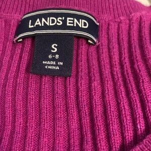 Lands End Women’s Violet Purple Scoop Neck Short Sleeve Sweater Size S (6-8). Ripped. Very good preowned condition. Approximate measurements armpit to armpit 14 1/2 inches length 23 inches. Cotton
