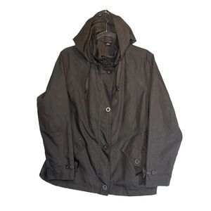 Lands End Women’s Waterproof Rain Coat Windbreaker Black Size L/P 14-16 VTG