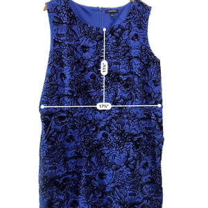 Lands' End Women's Wear to Work Dress Persian Cobalt Flocked Floral Ponte Sheath