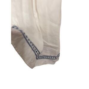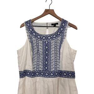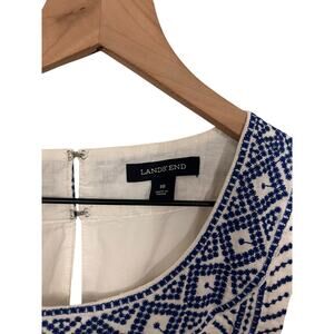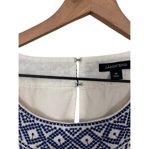 Lands End Womens White Blue Embroidered Fit and Flare Linen Dress Size 18
