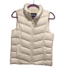 Lands End Womens White Down Puffer Vest S Full Zip Pockets Winter Warm