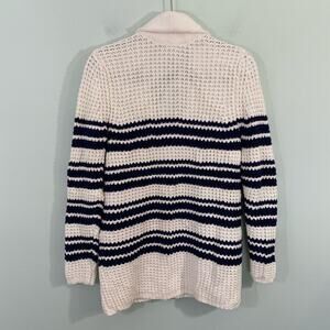 Lands' End Women's White & Navy Nautical Shawl Collar Knit Cardigan Size M
