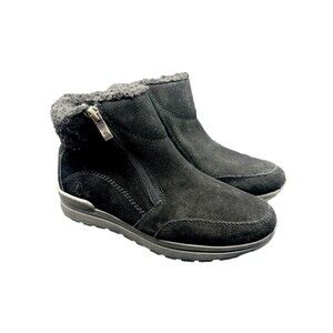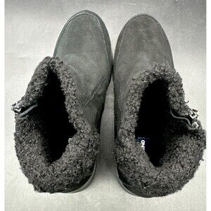 Lands End Women’s Winter Ankle Boots Side Zip Black Suede Sz 6.5B NEW