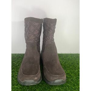 Lands’ End Women’s Winter Snow Boots Brown Suede Quilted Mid Calf Size 7