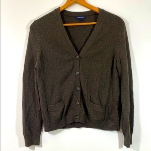 Lands' End Women's Wool Blend Brown Cardigan Sweater Size L