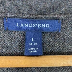 Stay cozy and stylish with this Lands' End heather brown cardigan sweater. Perfect for layering, this sweater offers comfort and elegance for any occasion.