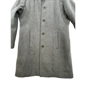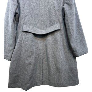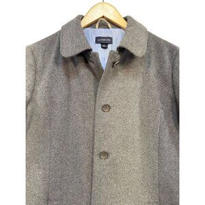 This elegant Lands' End coat provides warmth with its wool blend shell and polyester lining. The gray hue and classic button-up design offer a timeless look for professional settings.