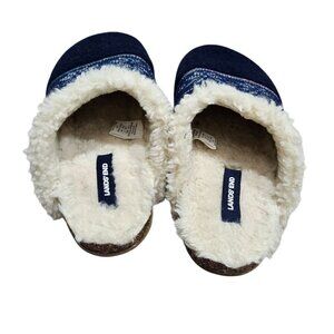 Lands End Womens Wool Blend Slip-On Slippers Sherpa Blue Nordic Snowflake 9