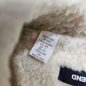 These slip-on slippers combine warmth and comfort with a stylish snowflake design. The wool blend exterior and sherpa lining offer cozy insulation, while the rubber soles provide durable traction for indoor use.