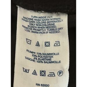 Fabric & Care: 73% Cotton, 23% Polyester, 4% Spandex. Machine wash warm, tumble dry low, warm iron if needed.