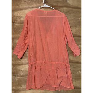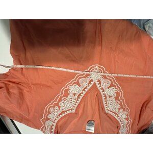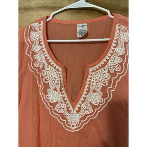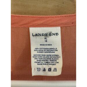 Lands End Womens XL Pink Cotton Embroidered Swim Coverup Dress Shirt Boho