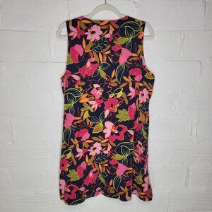 Lands' End Women's XL Size 18 Tank Dress Sleeveless Blue Pink Flowers