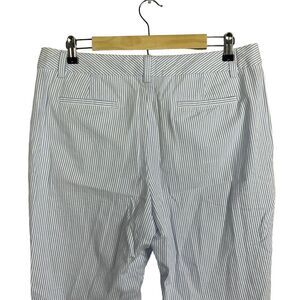 Lands End Women's size 12 Blue White Striped Mid Rise Flat Front Cotton Pants