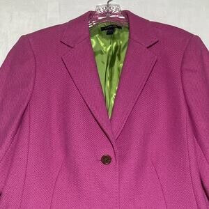 Lands End Wool Blazer Jacket Womens 14 Pink Textured Two Button Classic Office