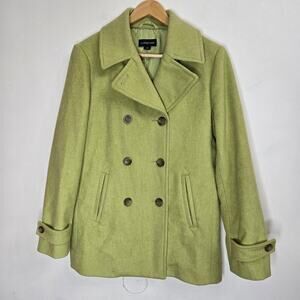 Lands End Wool Blend Pea Coat Women Size 10 Lime Green Quiet Luxury Brat Classic