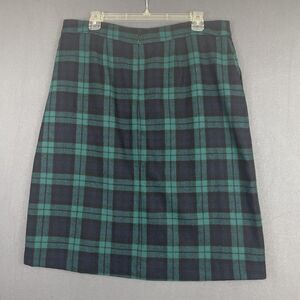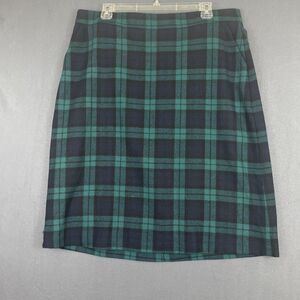 Lands End Wool Blend Tartan Plaid Pencil Classic Skirt Sz 12 Academia