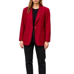 Lands' End Wool Cashmere Blend One Button Blazer Jacket Red