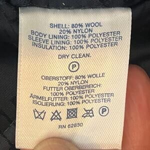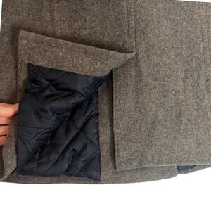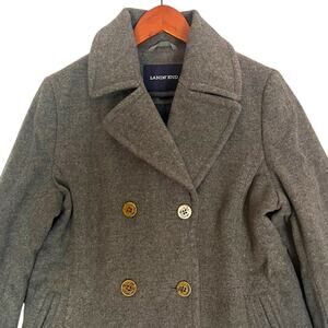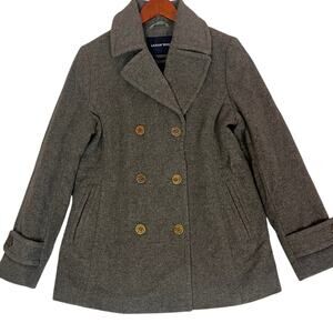 Classic Lands’ End gray peacoat with a double-breasted design. Features classic anchor button details. Pockets, single vent, lined. Wool and nylon blend.