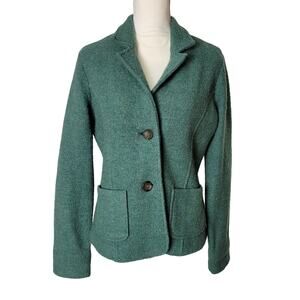 Lands' End Wool Jacket Green Button Collar Pockets Comfort Layer Blazer Top