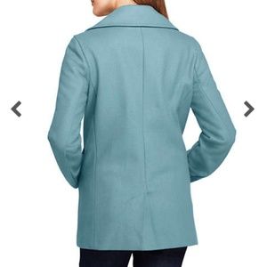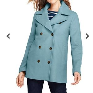 Lands' End's wool peacoat has always had a great authentic style. The fabric is wonderfully dense, but soft melton. It's the perfect coat you'll love! It has a great oversized notch collar and is convertible, so you can leave it open or button it up, depending on the weather. Refined wool-blend fabric, classic double-breasted pea coat styling, deep notched collar is convertible, beautiful constructed double-welt front pockets, smooth full lining, falls to low hip. Chest is 20” across laid flat; Hips 22” across laid flat. Length is ~26” shoulder to hem.