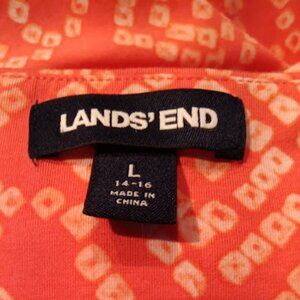 Lands' End Wrap Dress Women's L Coral Pink Jersey Knit Knee Length