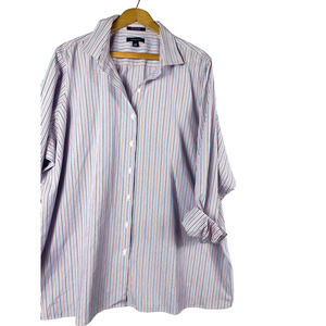 Lands End Wrinkle Free Broadcloth 28W 4X Button Down Shirt Women White Blue Pink