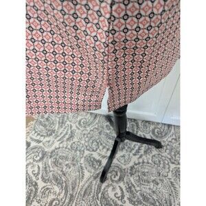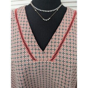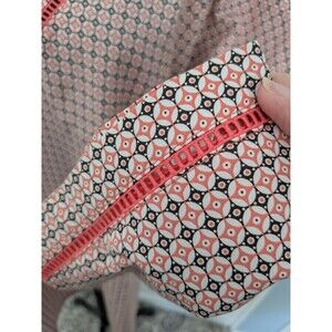 Lands' End Wrinkle Free Top Women's 14-16 L/T Orange Blue Tile Geo Coastal Prep