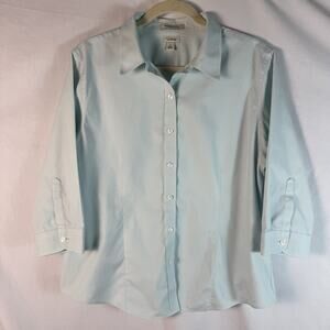 Lands End Wrinkle Resist Blue Button Up Shirt Size Large Petite 100% Cotton