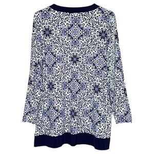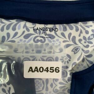Lands End XL White Navy Blue Floral Tunic Swim Shirt Tee Rash Guard