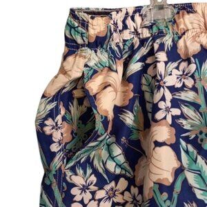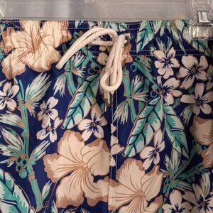Lands End XXL 44 46 Mens Floral Swim Trunks Elastic Waist Drawstring Polyester