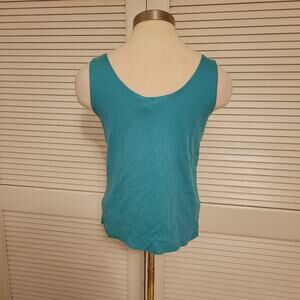 Lands' End Y2K Blue Cotton Stretch Tank Top Small Floral Embroidered Trim