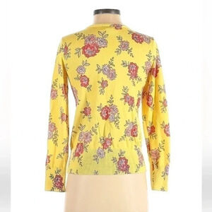 Lands’ End | Yellow Floral Button Down Cardigan Supima Cotton Size XS