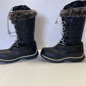 Lands End Youth 487526 Hillary Tall Snow Winter Boots sz 3m Faux Fur Black