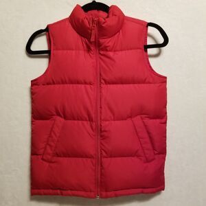 Lands End Youth Sm 8 Vest Jacket Down Puffer Full Zip Red Mock Neck Classic