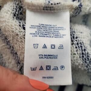 A couple faint yellow stains from sunscreen. They blend in pretty well with the pattern. See all pics for condition.