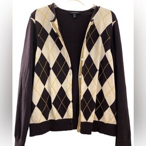Lands End argyle sweater, large petite. Navy Blue with cream and gold .