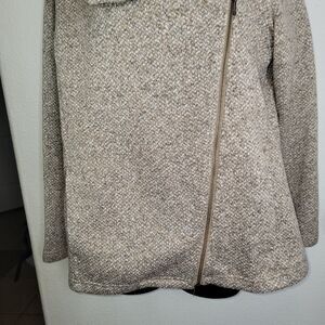 Excellent like new condition. No flaws to note. Women's Lands' End asymmetric moto knit jacket size M/P (10-12) medium petite.